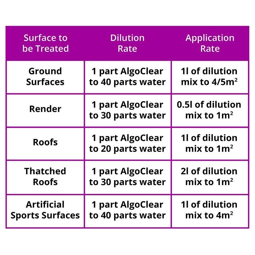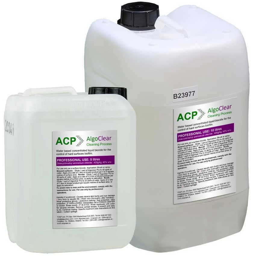 AlgoClear Pro is a high-strength, professional concentrated biocide cleaner used for cleaning patio slabs, roof cleaning and cleaning many other hard surfaces. This product is ideal for cleaning algae, moss, mould and other biofilms from large areas such as driveways, sports surfaces such as tennis courts, roofs and many more.