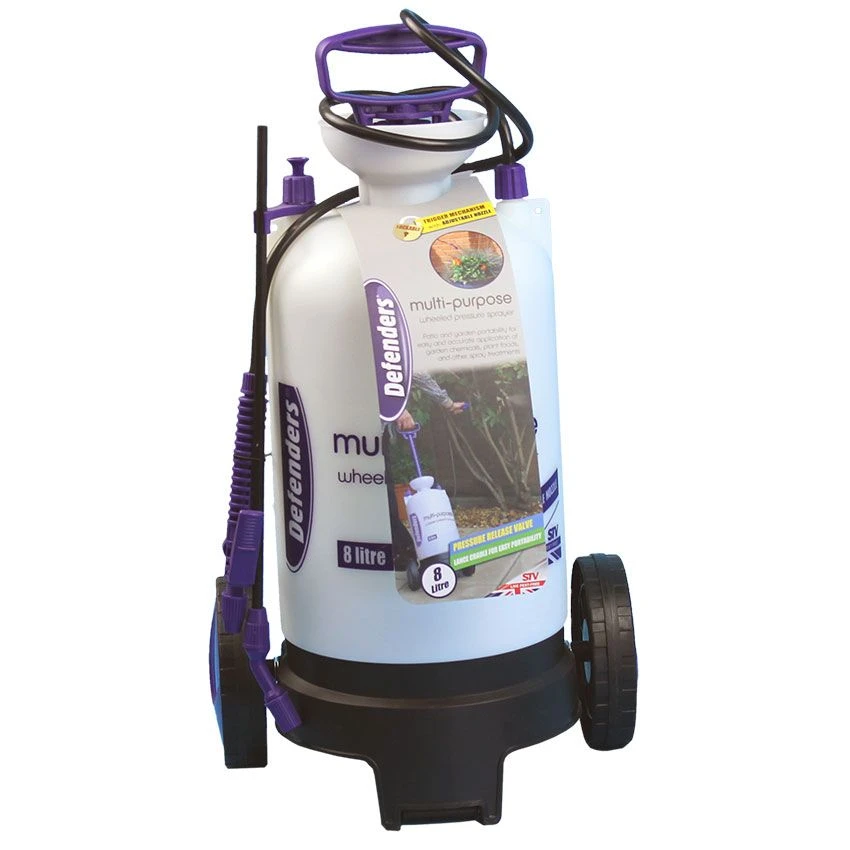 This Defenders 8L multi-purpose wheeled pressure sprayer is ideal for gardeners of limited mobility or those with injuries that do not allow them to carry heavy objects.